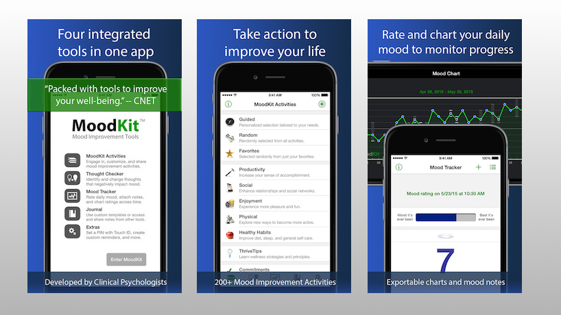MoodKit is stuffed with mood improvement tools, including activities to boost your outlook immediately, a thought checker to monitor your moods, and a journal for you to help work through your emotions. The app works with your iOS calendar and can be synced with your social media accounts. We like that there's the option to track your moods quickly and refer back using weekly or monthly charts.