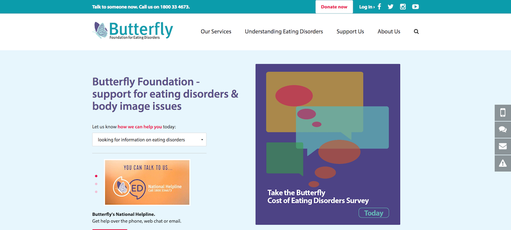 The Butterfly Foundation provide support for eating disorders and body image issues.