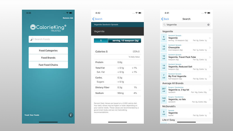 CalorieKing Food Facts helps you to manage your weight and carbohydrate counting based on an Australian food database over 26,000 Australian foods, including common restaurant and take-away foods