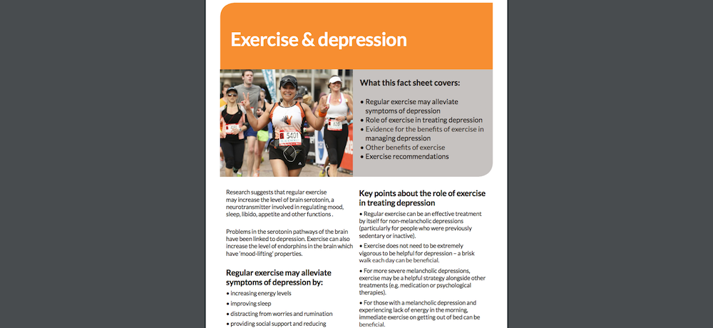 Problems in the serotonin pathways of the brain have been linked to depression. Exercise can also increase the level of endorphins in the brain which have ‘mood-lifting’ properties.