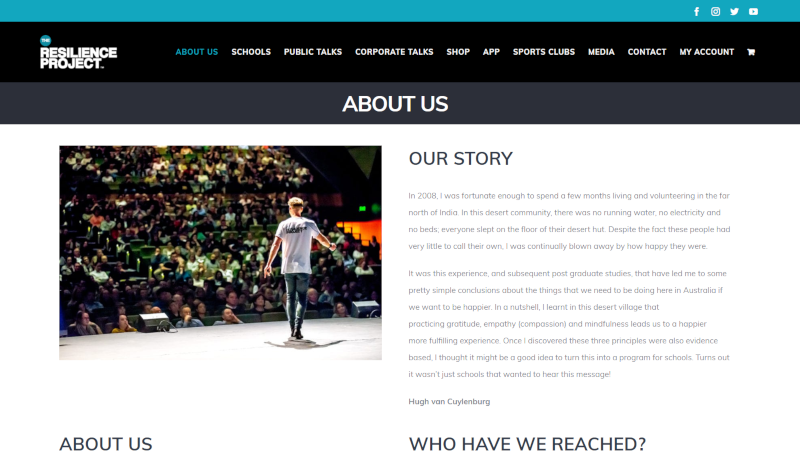 The Resilience Project delivers emotionally engaging programs to schools, providing practical, evidence-based, positive mental health strategies to build resilience and happiness. Our approach is to work with the whole school community including teachers, students and parents helping them understand the importance of practicing and implementing key strategies to build resilience and drive sustainable change.
