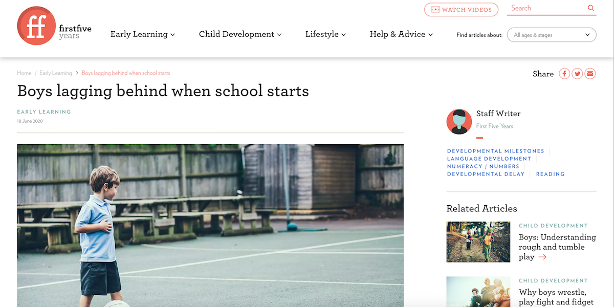 This means boys aren’t as prepared for school as their female peers.