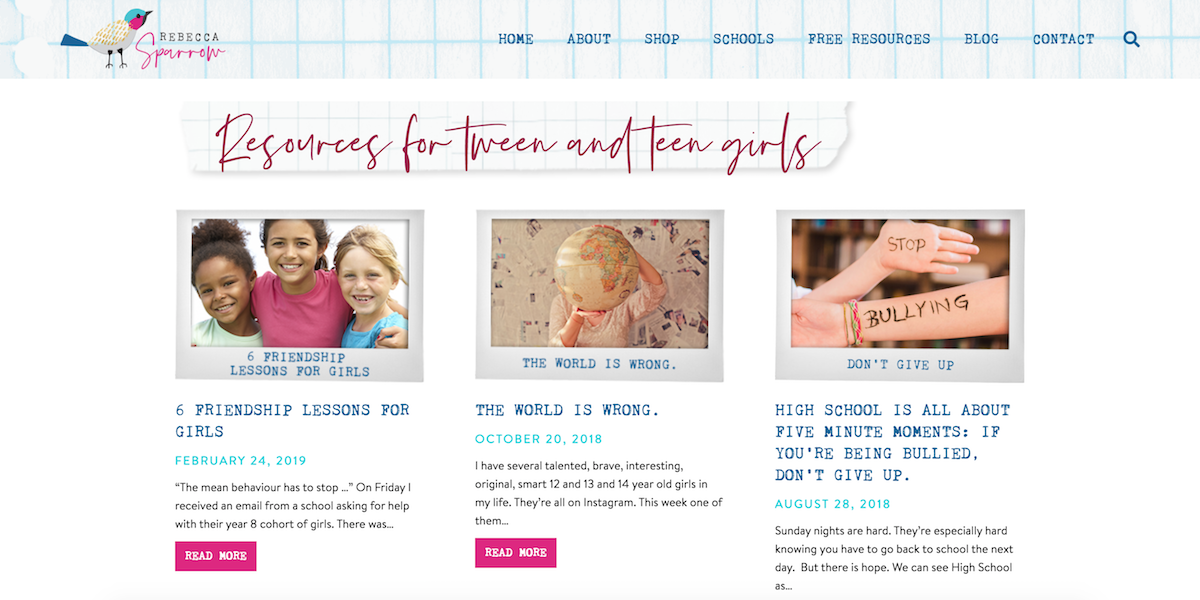 Since 2009 Rebecca has focused on writing non-fiction books for teenage girls to help them navigate those tricky high school years. She plays Agony Aunt to teenagers across the country on the Ask Me Anything podcast and also talks to thousands of high school students (and their parents!) every year about friendship, resilience, giving back and how to have a more positive experience online.